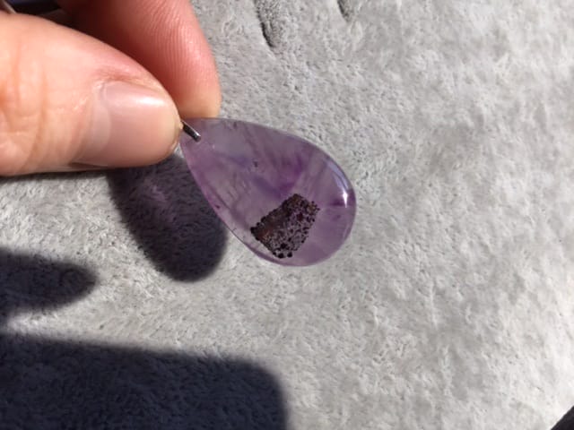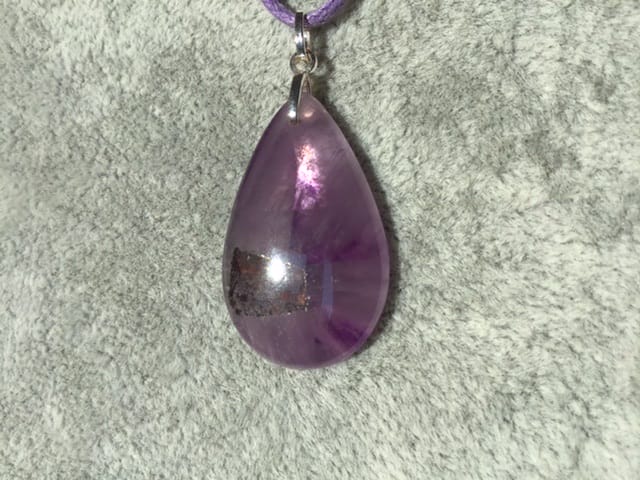 Goutte d ‘ améthyste avec inclusion de goethite sur bélière en argent925