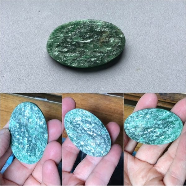 Aventurine ou quartz à fuschite, pierre très douce avec chatoyance, une face brute et une face adoucie, vous recevrez la pierre des photos