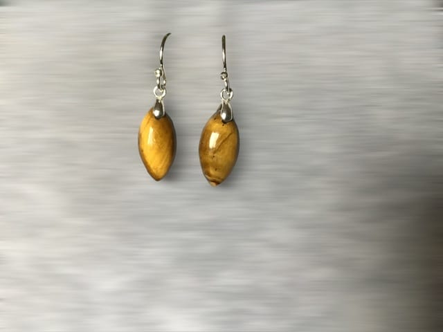 Boucles d’ oreilles en oeil de tigre au beau reflet bien jaune !