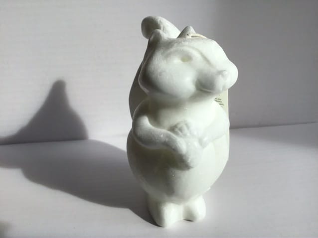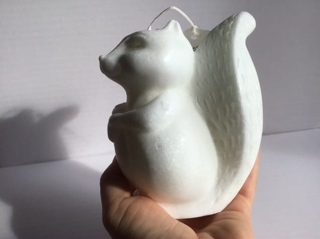 Bougie Artisanale, grand format, de la marque Bougies La Française, en forme d’écureuil de couleur blanche