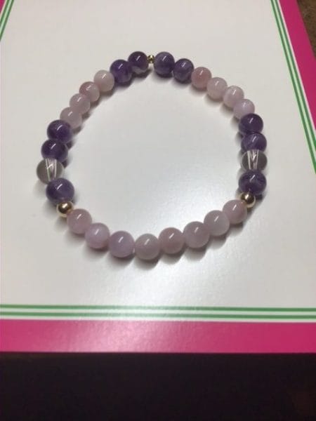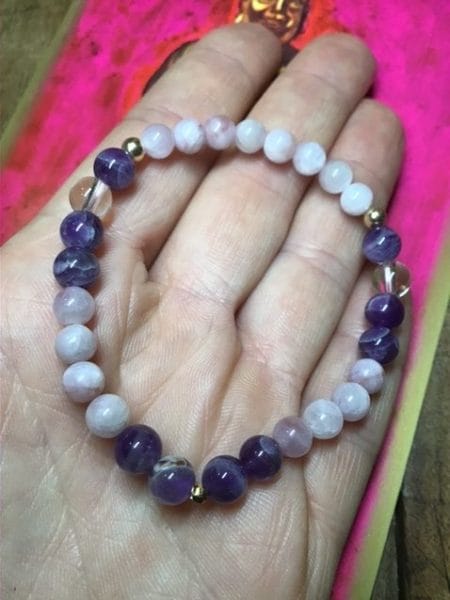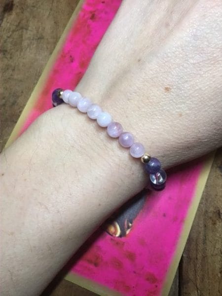 Perles de kunzite de 5mm – améthyste 6mm – cristal de roche 6mm – pépites perles plaquées or – élastique multibrins