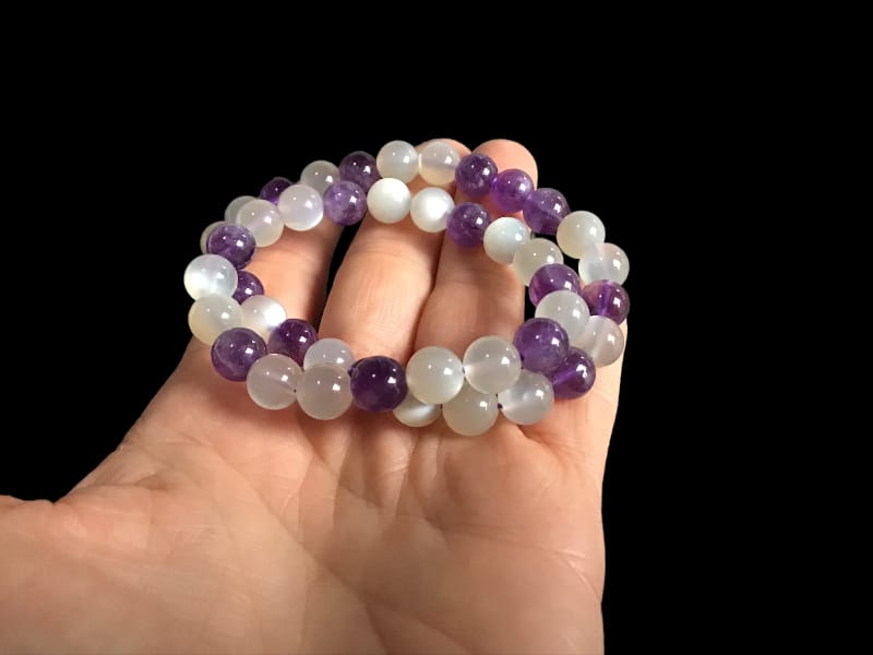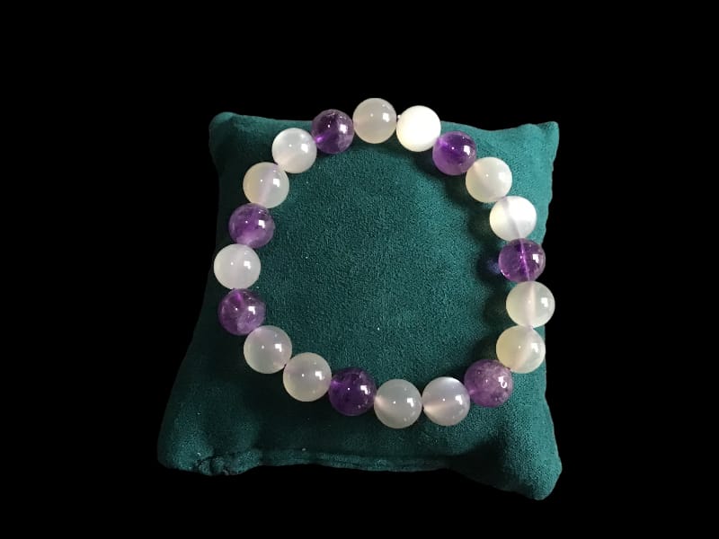 - je vous propose sur cette fiche un bracelet en perles de 8mm en améthyste et pierre de lune adulaire de très belle qualité