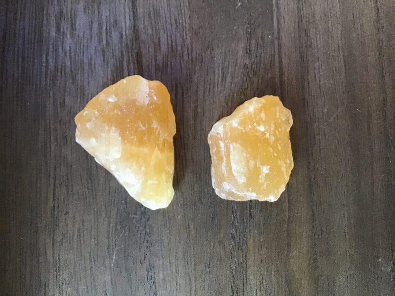 Calcite orange brute du Mexique, vous recevrez un des deux morceaux pris au hasard pour vous.