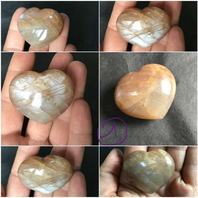 Choisissez votre coeur 3 D en pierre de lune de Madagscar, superbe pierre mêlant la variété adulaire et microcline selon les modèles, mais toujours avec de magnifiques reflets.