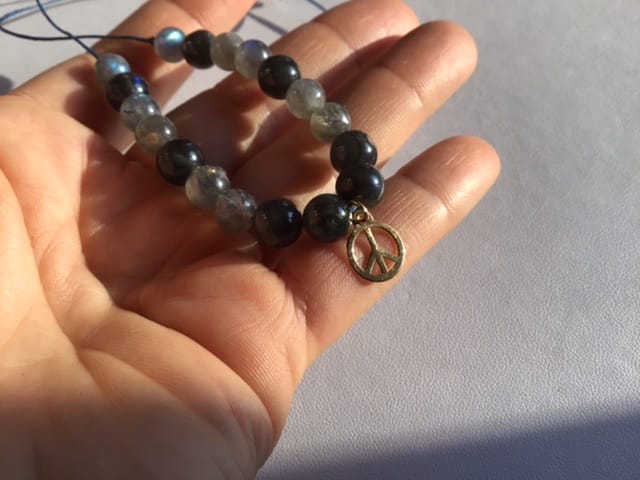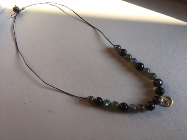 fil de lin poissé, fermoir labradorite perle 8mm qui tient bien fermé avec le poids naturel des perles