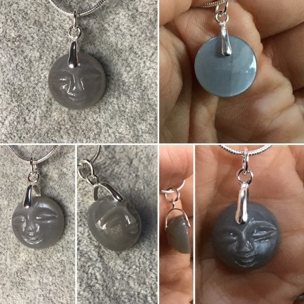 Jolie face ronde en adulaire grise de très belle qualité avec bélière en argent 925