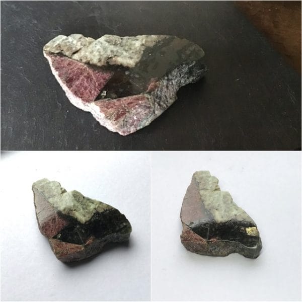 • présence d’ astrophyllite (petites zone aux reflets bruns mordoré)