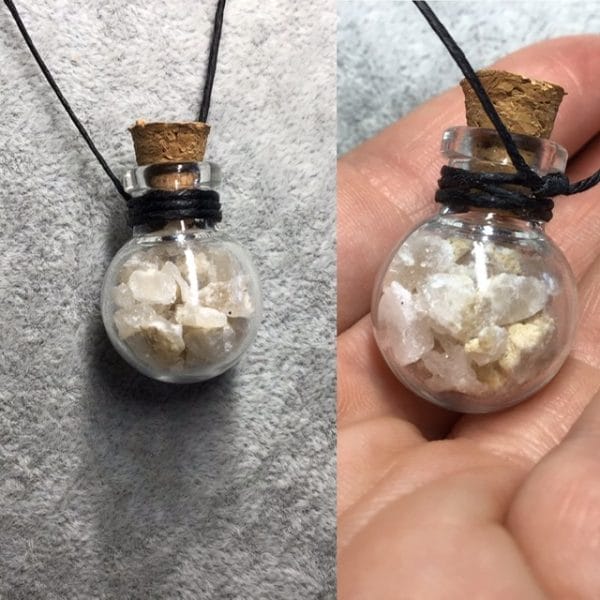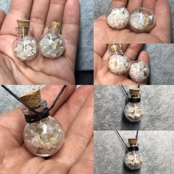Vous recevrez une des fioles présentées sur les photos, dotée d’un cordon pour pouvoir la porter en pendentif