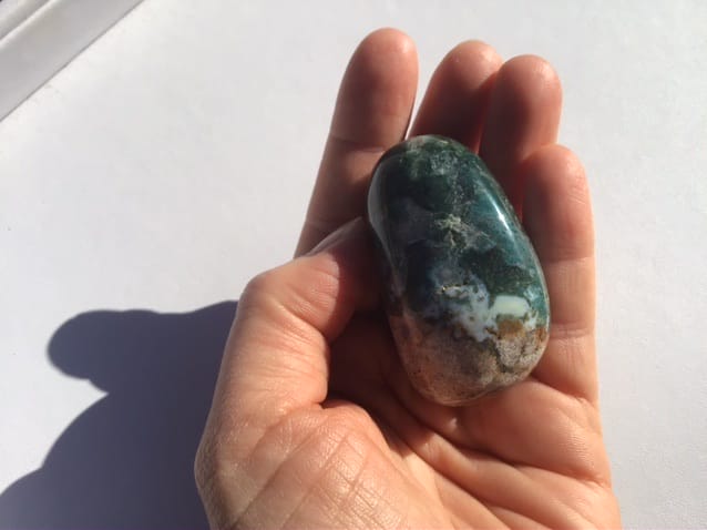 Vous recevrez le galet d’ agate mousse de la photo, origine Madagascar, dimension env 6cm