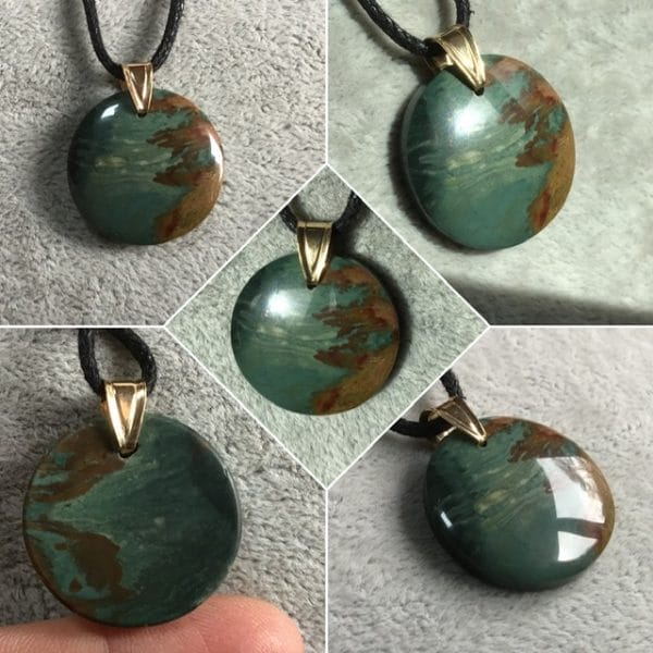 Jaspe américain avec bélière en argent925 plaqué or taillé en France par notre partenaire lapidaire