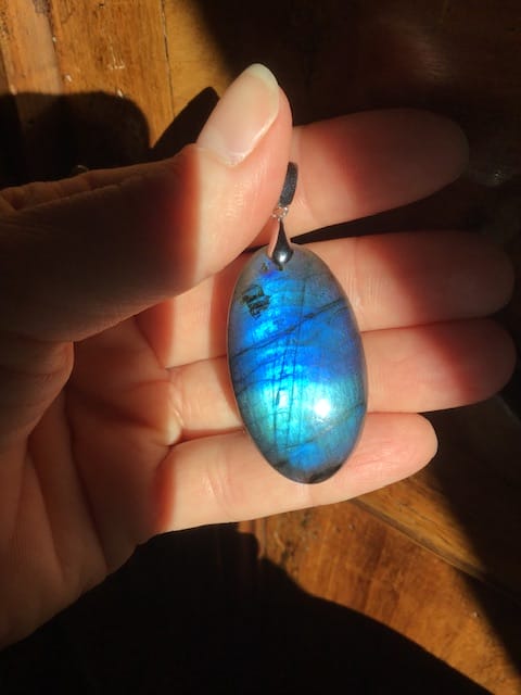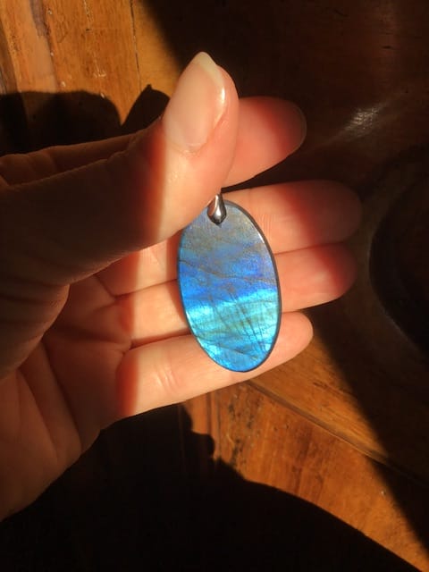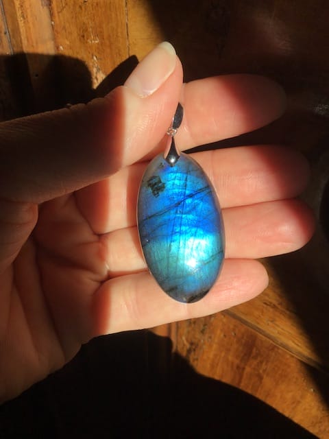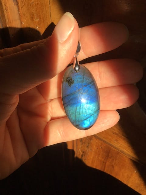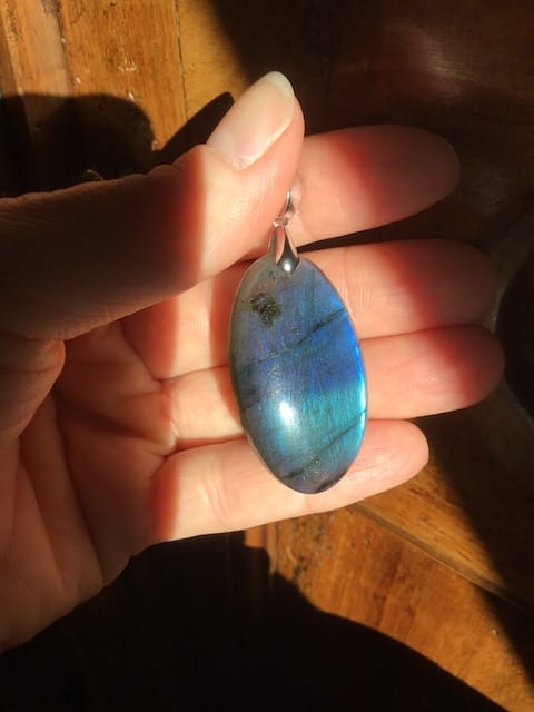 Superbe Labradorite au bleu aquatique, tres colorée et lumineuse, avec bélière en argent 925