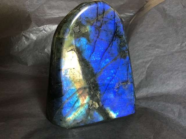 Forme libre en labradorite bleu pouvant être utilisée en lithotherapie ou bien en décoration d ‘ interieure.