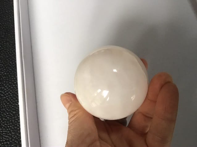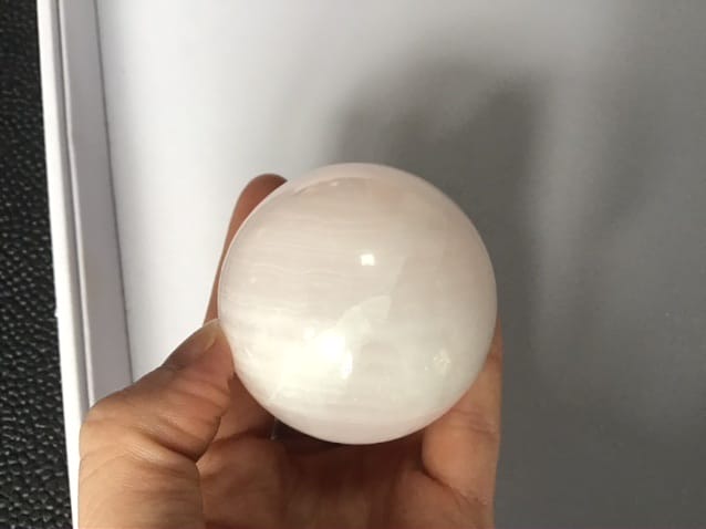 Diamètre env 5 cm, très douce sphère de calcite rose ou manganocalcite afghane