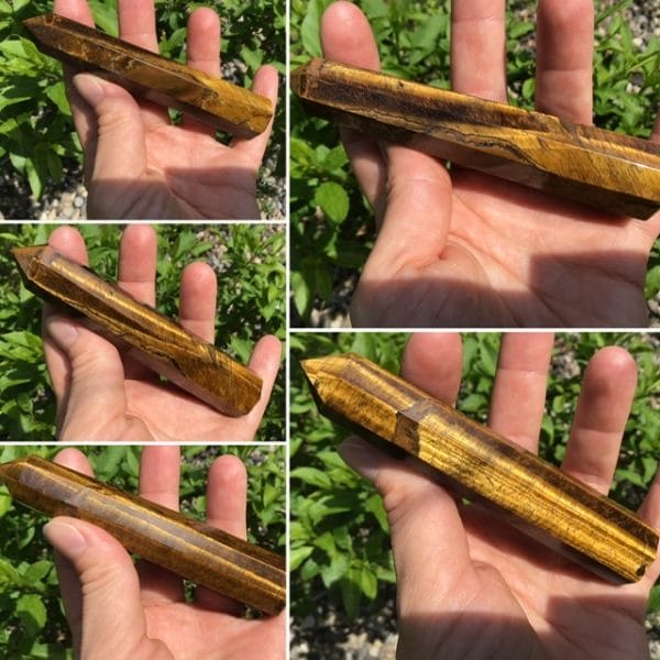 Magnifique tour ou prisme en oeil de tigre naturel avec un oeil en motif! Les couleurs et reflets sont superbes.