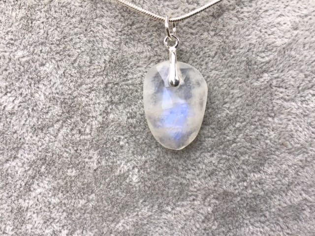 Voici un petit pendentif très original en péristerite facettée et argent 925