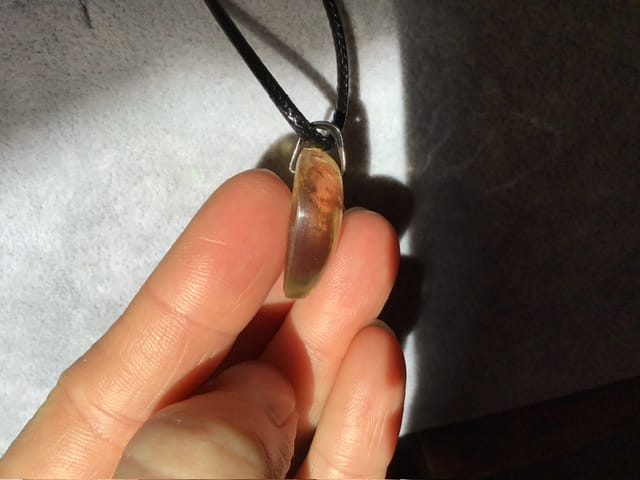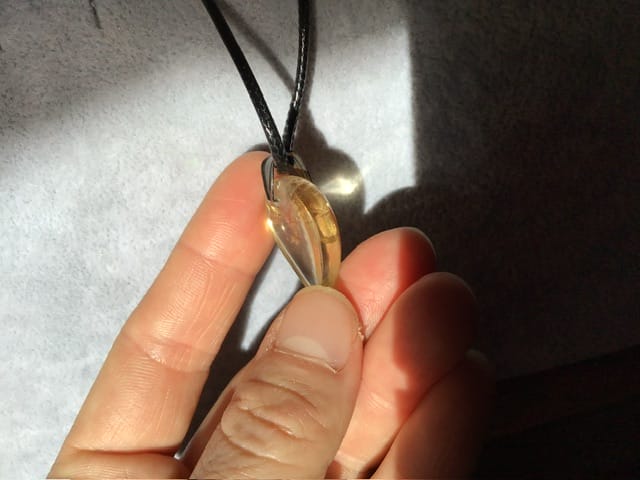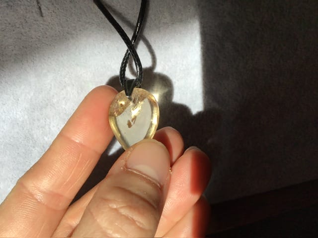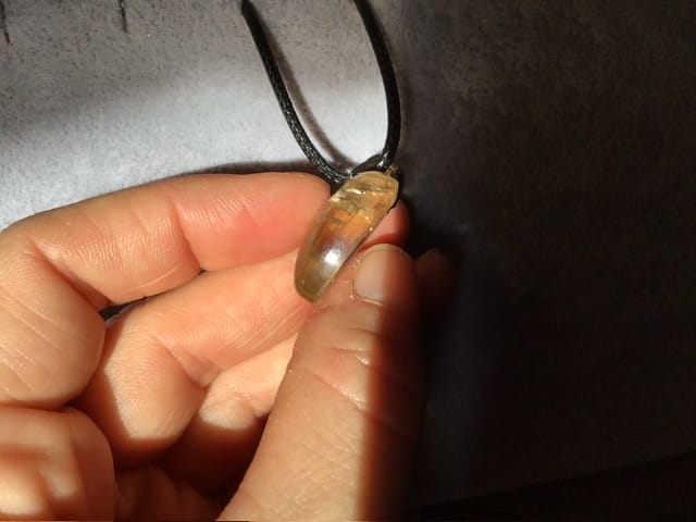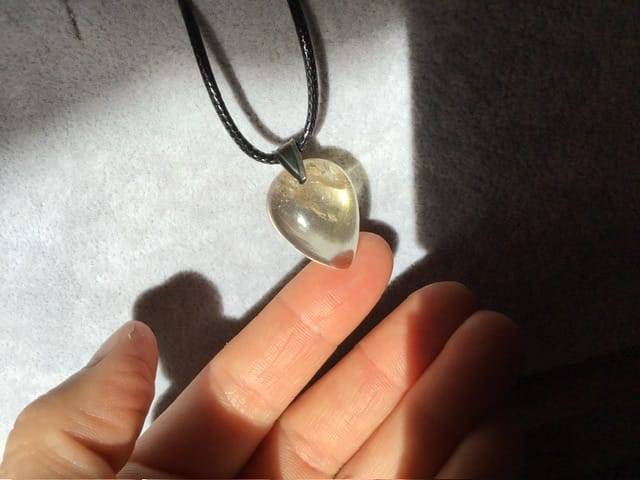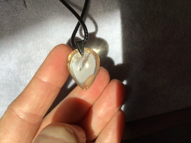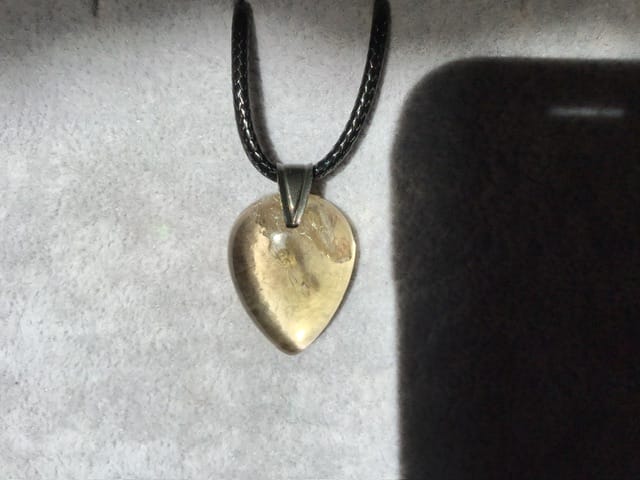 Très belle qualité de quartz citrin / citrine naturelle, goutte percée à l’envers pour imager un coeur.
