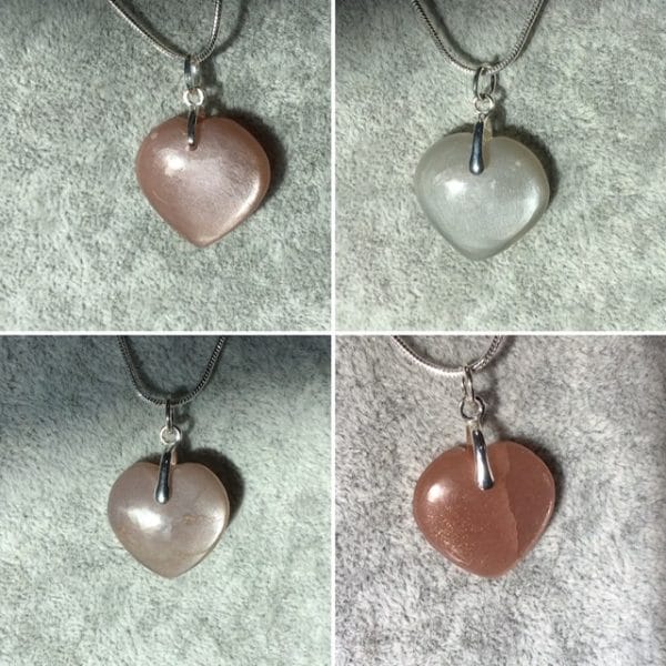 Choisissez un joli petit coeur en pierre de lune abricot, grise, chocolat, blanche…