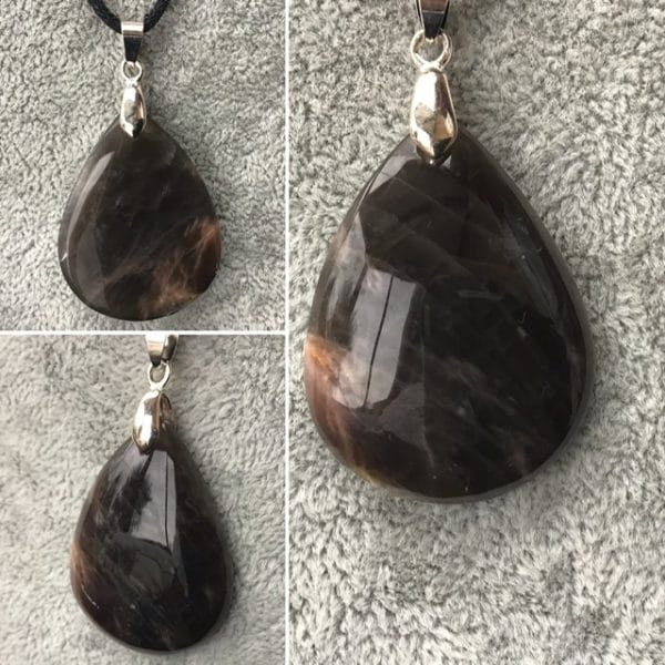 Pierre naturelle de Madagascar nommée pierre de lune noire, variété microcline.