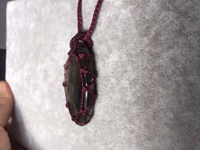 Superbe macramé avec cordon réglable couleur bordeaux en polyester ciré resistant à l’eau.