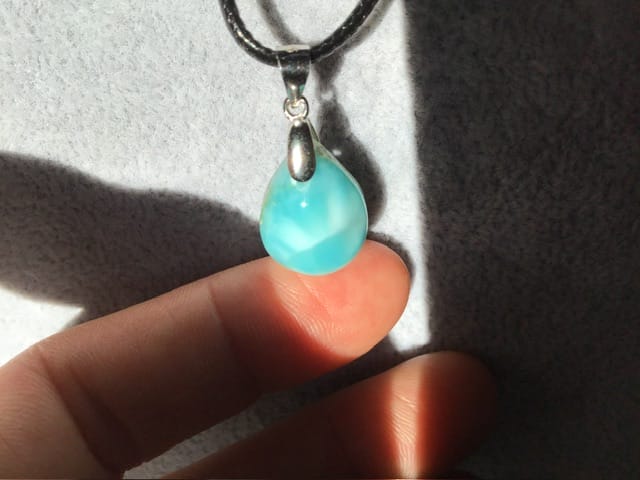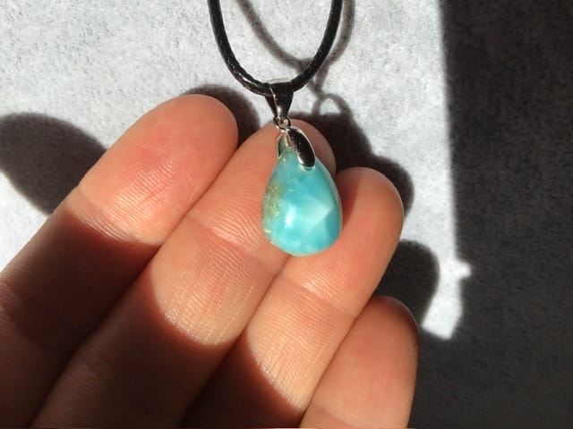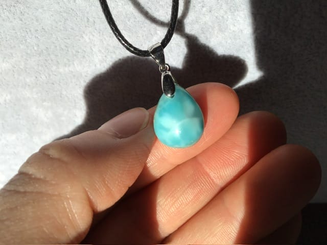 Larimar en provenance de République dominicaine garantie, mine tenue par des propriétaires dominicains et non chinois. Malheureusement les chinois achètent les mines aussi là bas…