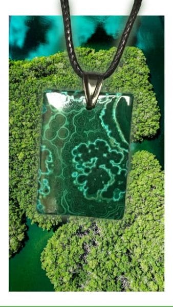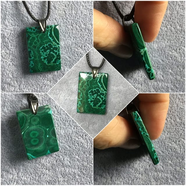 Très original rectangle de malachite chrysocolle du Congo, pendentif plutôt masculin.