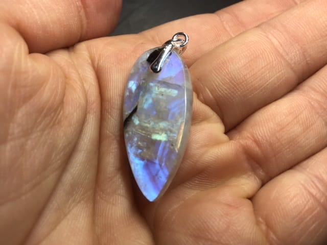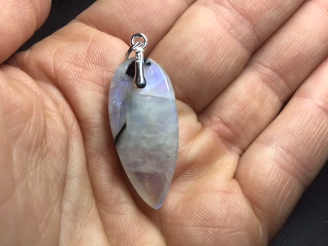 Bélière en argent 925, superbe pierre nommée dans le commerce pierre de lune arc en ciel