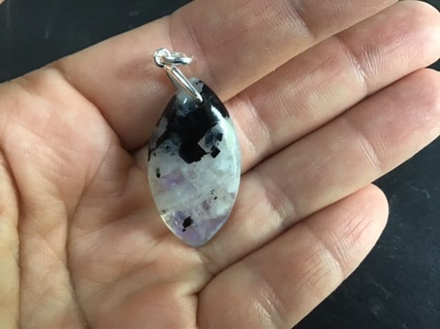 Péristérite de superbe qualité, pendentif de 3,4cm avec bélière en argent 925