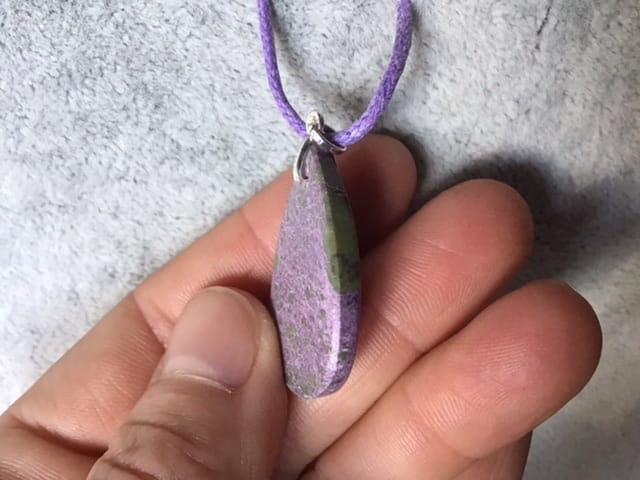 Pendentif en pierre non traitée, naturelle, en stichtite sur serpentine, avec argent925, goutte env 2,8cm