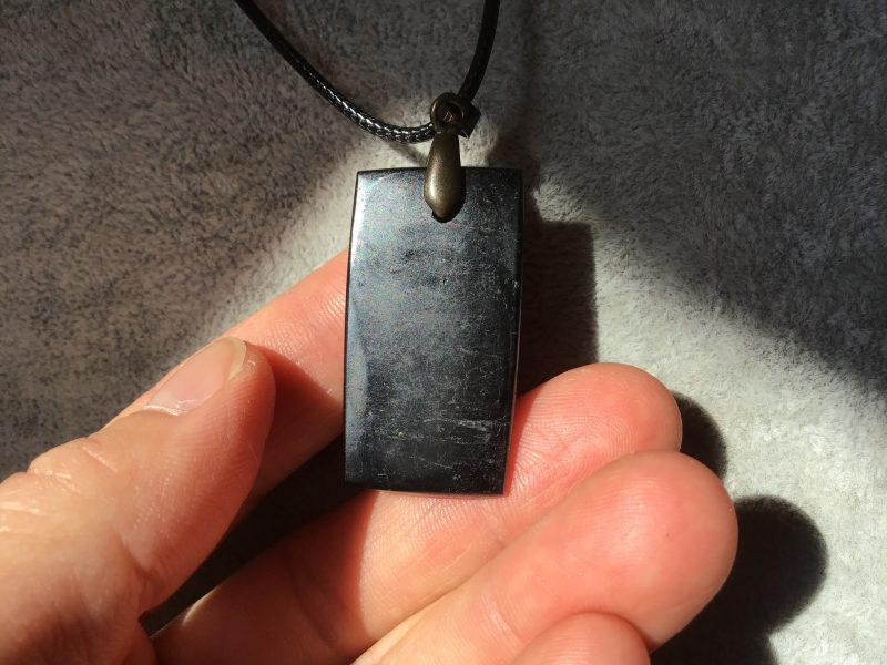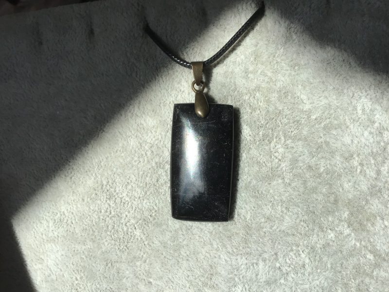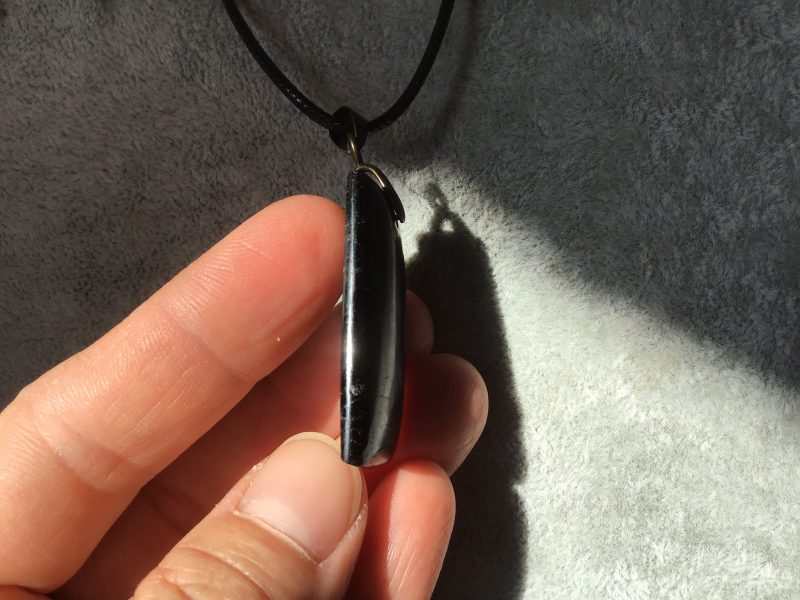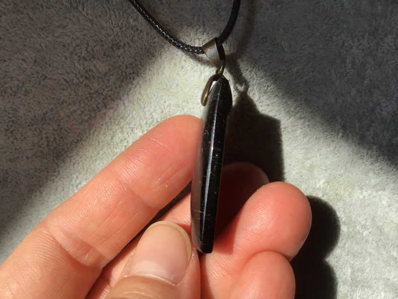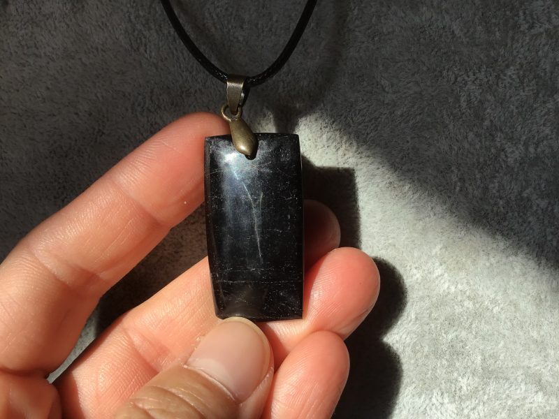 Tourmaline noire de Madagascar avec accroche en métal inoxydable, forme rectangulaire masculine