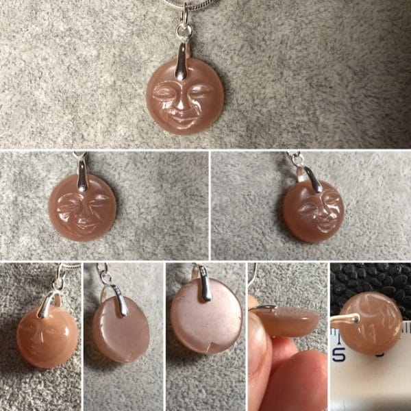Pendentif pierre de lune peche abricot ronde de très belle qualité, avec bélière en argent 925.