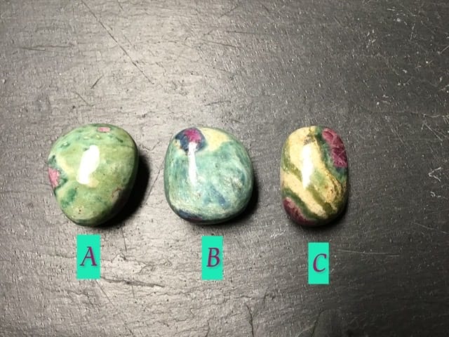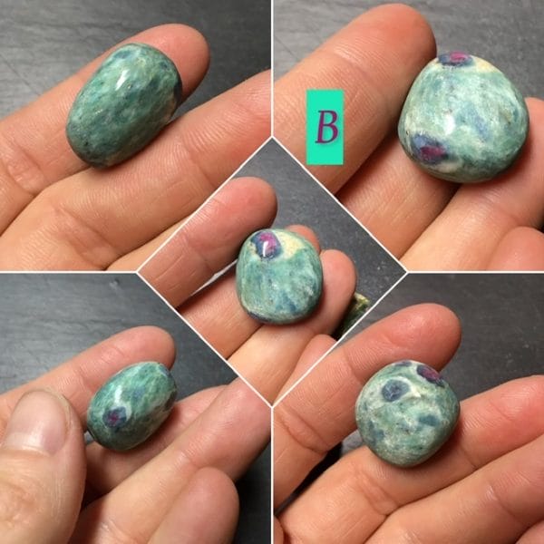 Voici d ‘ adorables petits rubis dans de la fuschite, entièrement naturels, juste polis, origine Inde.