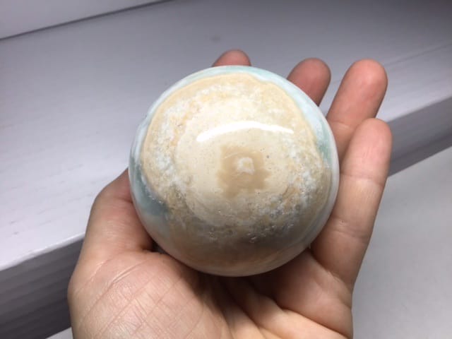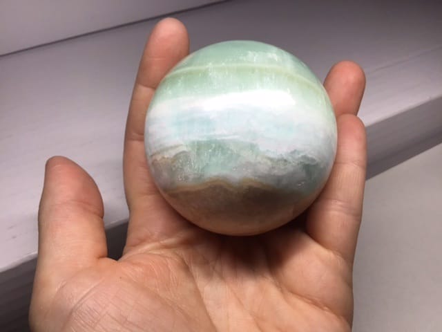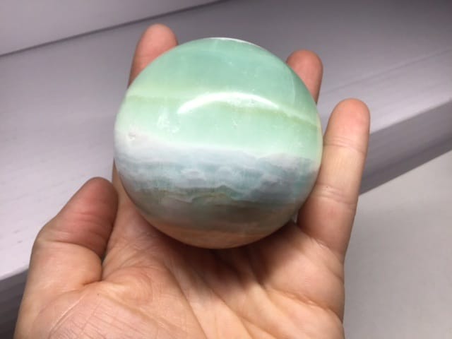 superbe dégradé d’aragonite crème vers de la calcite bleue puis verte